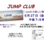 2025年5月27日 / 最終更新日 : 2025年10月30日 shoko お知らせ ジャンプクラブ 2025年6月 ジャンプクラブのお知らせ 学生の楽しい集まりです。 2025年6月27日(金) 午後7時~9時 夕ご飯代 300円